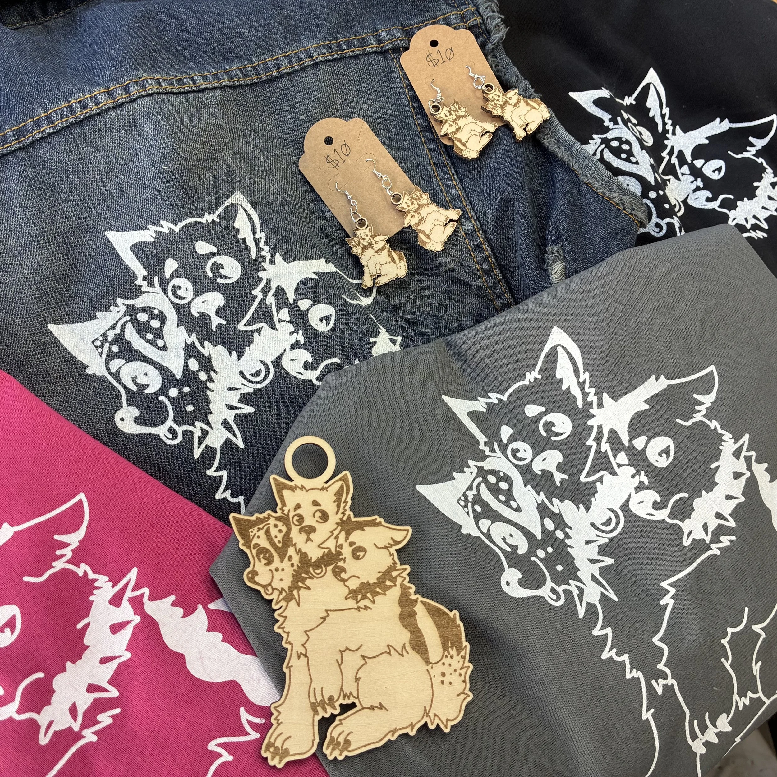 Merchandise of the chosen critter is available only through the month they are announced & occasionally at vendor events! What’s available will vary, but you can expect tote bags, earrings, keychains, and more!